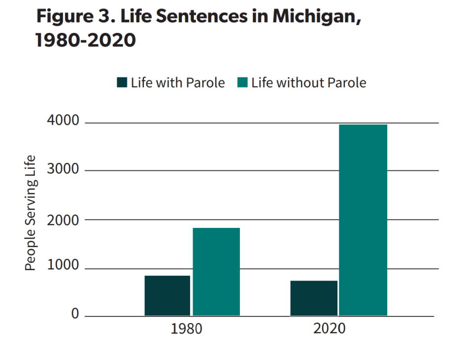 Approximately 5,000 people are serving life sentences in Michigan and three quarters of them are ineligible for parole. Michigan has the fifth-largest population of people serving life without parole (LWOP) in the United States.11