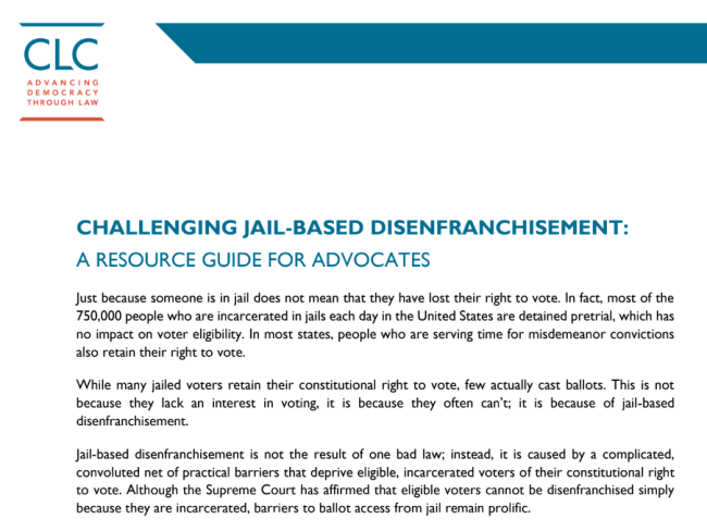 - Challenging Jail-Based Disenfranchisement: Resource Guide for Advocates