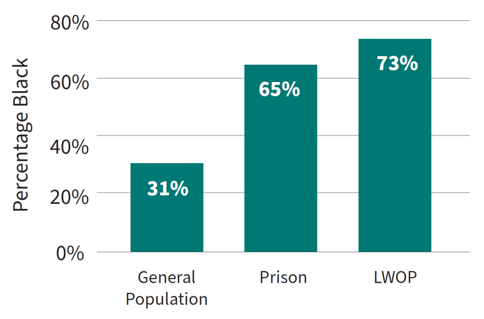 Figure 3. Black Louisianans as a Percentage of the State’s General Population, Prison Population, and Persons Sentenced to LWOP