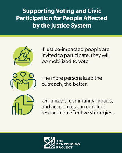 - The more personalized the outreach, the better. This is true for most voters. Personalized overtures soliciting participation, especially from people who are respected by the eligible voter, can be very successful. Justice-impacted people may need support in understanding whether they are eligible to vote, and they may also need to be convinced that voting is valuable. Personalized messages from people they respect or love can help meet these goals.