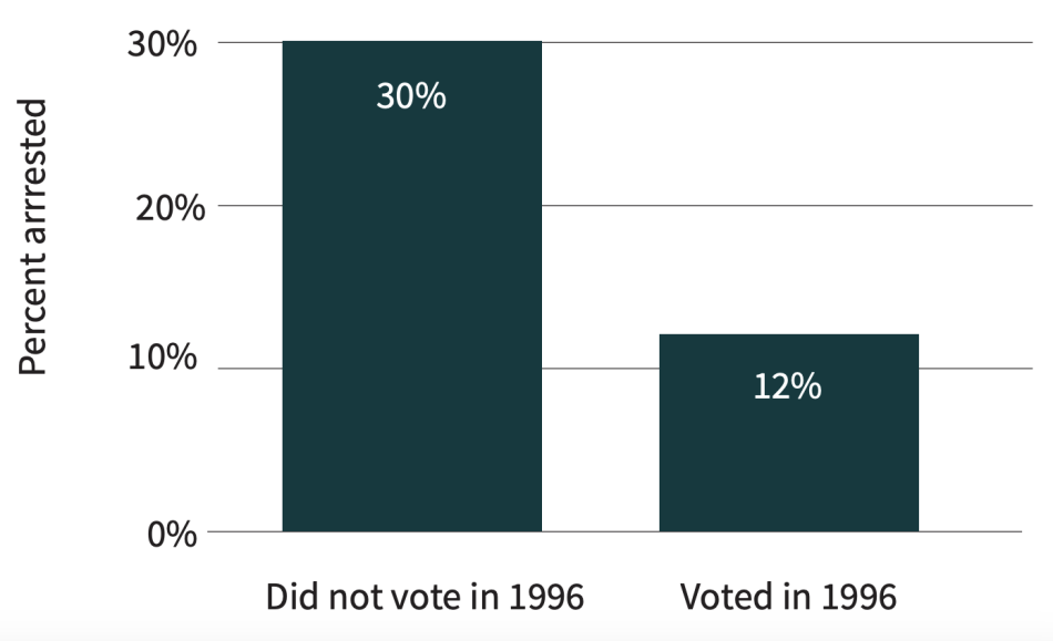 Source: Uggen, C., & Manza, J. (2004). Voting and subsequent crime and arrest: Evidence from a community sample. Columbia Human Rights Law Review, 36(1), 193-216.