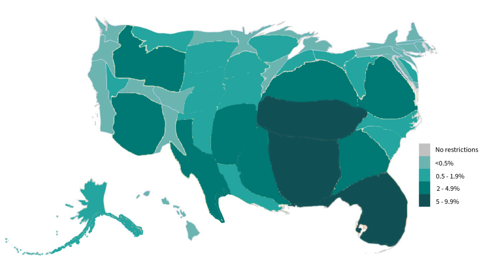 Figure 4. Cartogram of Overall State Disenfranchisement Rules, 2024
