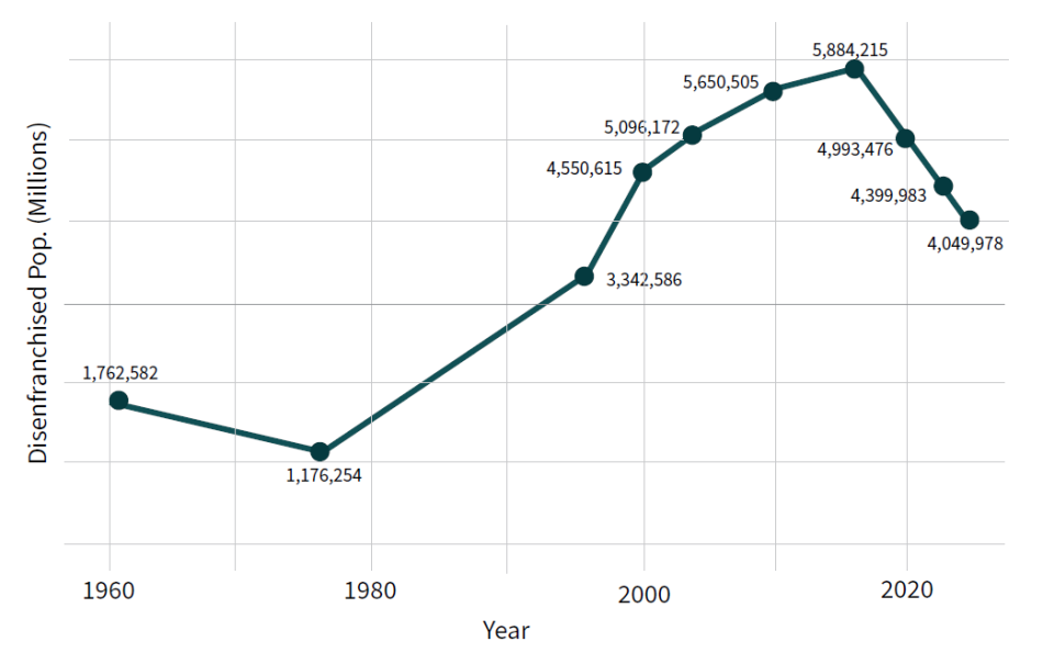 Figure 5. Number Disenfranchised for Selected Years, 1960-2024