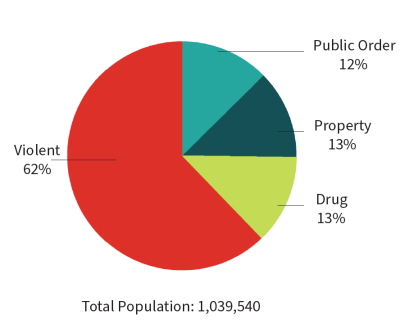 More than three in five people (62%) serving a state prison sentence have been convicted of a violent crime, as compared with 1970 when 30% of people in prison had been convicted of violence.14