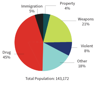 Sentencing policies enacted under the banner of the “War on Drugs” which began in the early 1970s and accelerated with the utilization of broadly punitive mandatory minimum and three-strikes policies, resulted in dramatic growth in incarceration for drug offenses. This is particularly evident at the federal level, where 45% of the prison population is incarcerated for a drug offense.