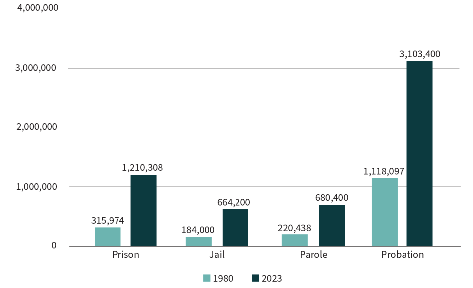FIGURE 6. PEOPLE UNDER U.S. CORRECIONAL SUPERVISION, 1980 AND 2023