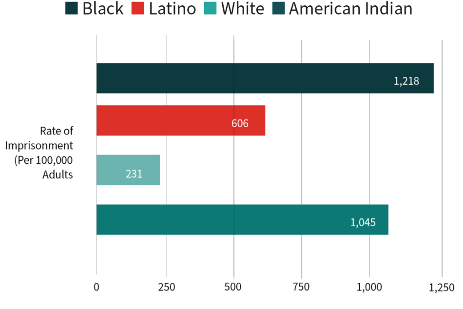 among the highest worldwide in its dependence on incarceration.1 What began as a response to rising crime and the expansion of punitive drug policies evolved into a complex network of prisons, jails, probation, and parole that now supervises almost six million people.2 This system of control is vast, unevenly applied, and deeply consequential, with far-reaching social, economic, and political effects. People of color are acutely impacted. Nearly two million people, disproportionately Black, are living in prisons and jails instead of their communities. This contrasts sharply with the early 1970s, when this number was 360,000.3