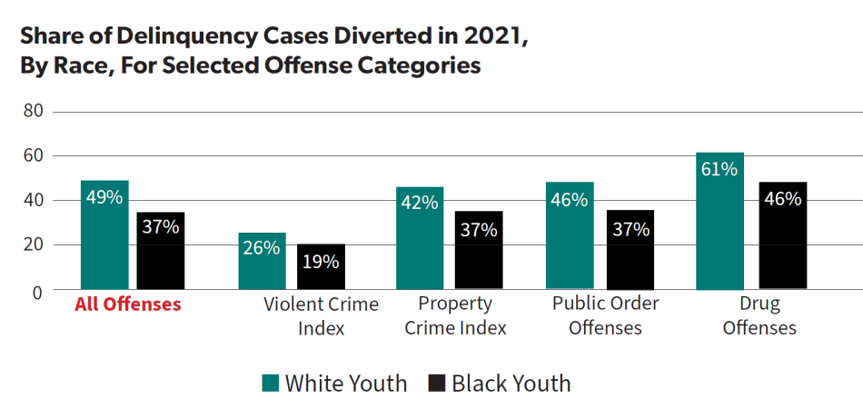 Share of Delinquency Cases Diverted in 2021, By Race, For Selected Offense Categories