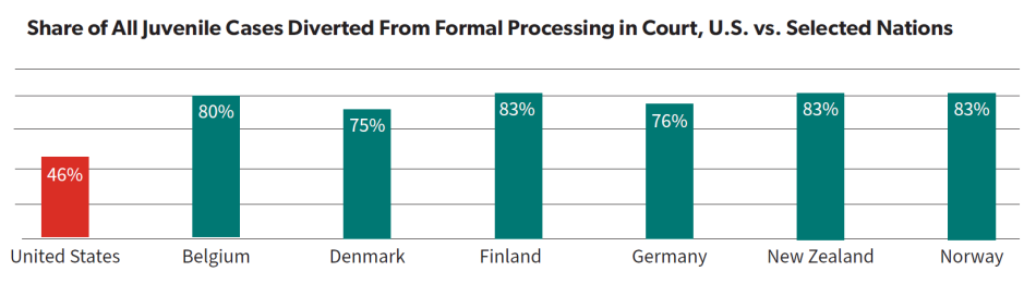 Share of All Juvenile Cases Diverted From Formal Processing in Court, U.S. vs. Selected Nations
