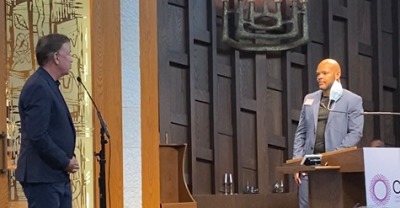 Salters with Connecticut Governor Ned Lamont in 2022 asking to commit funding for a Clean Slate implementation office that helps clear lower-level felonies from people’s records.