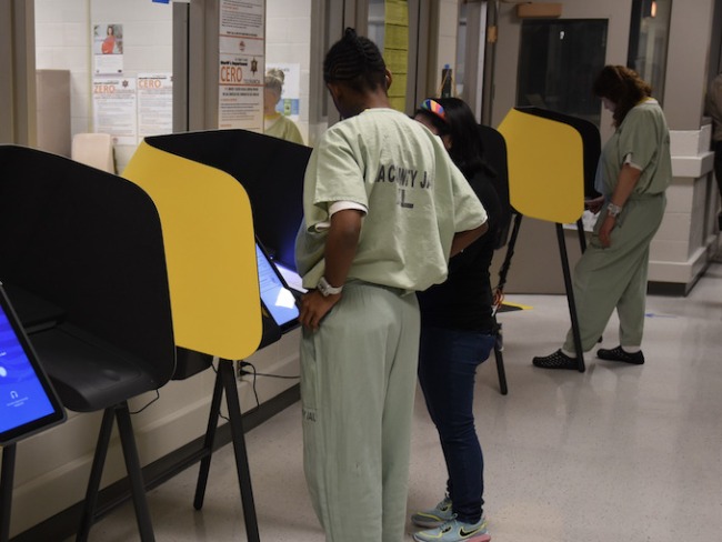 The Sentencing Project works collaboratively with national, state, and local advocates to guarantee voting rights for voters in jail. This advocacy highlights the importance of reform, as many incarcerated individuals, particularly persons awaiting trial, are legally allowed to vote in every state, while persons serving misdemeanor sentences are legally allowed to vote in most states. Barriers to the ballot for incarcerated voters include bureaucratic obstacles to registering to vote and casting a ballot absentee or in person. Advocacy in recent years resulted in in-person voting centers at local jails in Illinois, Colorado, and Texas.